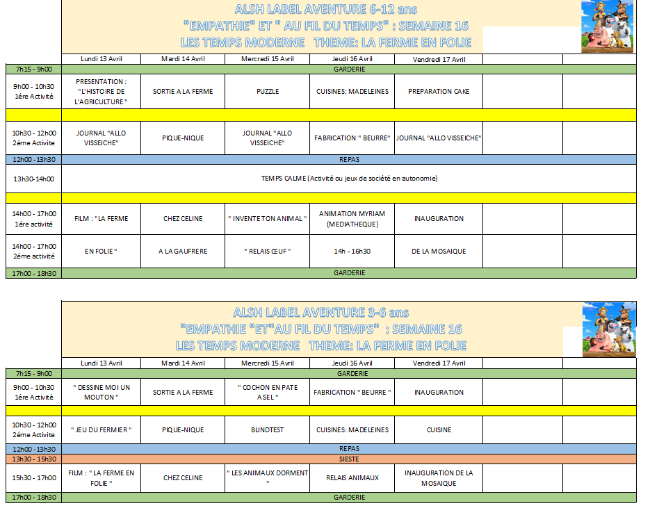 Programme du Centre de Loisirs